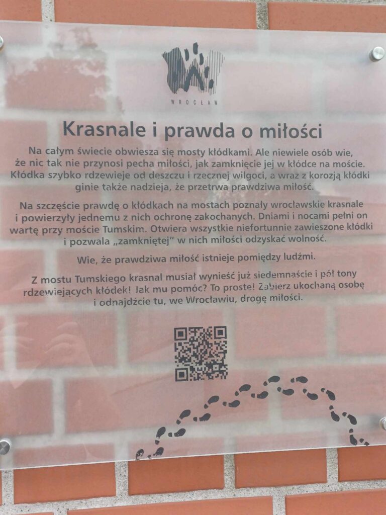 Zwyczaj wieszania kłódek przez zakochane pary, choć popularny na całym świecie, ma we Wrocławiu szczególną atmosferę. Pary przychodzą na most, aby zawiesić kłódkę – często z wygrawerowanymi inicjałami lub datą – a następnie wrzucają klucz do Odry, symbolicznie pieczętując swoją miłość na zawsze. Widok setek kłódek, różniących się kształtem, kolorem i wielkością, robi ogromne wrażenie i dodaje mostowi niepowtarzalnego charakteru.