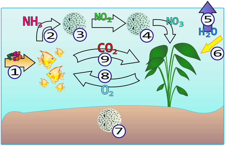 Nowo zakładane akwarium zazwyczaj nie posiada wystarczającej ilości korzystnych bakterii. Na początku, nawet w dobrze zbilansowanym akwarium, często pojawia się podwyższone stężenie amoniaku, które hamuje rozwój roślin. Dodatkowo rośliny mają trudności ze wzrostem z powodu braku azotanów, które są dla nich niezbędne. Amoniak sprzyja rozwojowi „dzikich” bakterii Nitrosomonas, które można znaleźć np. w kurzu czy piasku. Te bakterie przekształcają amoniak w azotyny, co z kolei stymuluje rozwój bakterii Nitrosospira, które produkują azotany. Jednak ich ilość jest tak duża, że rośliny nie nadążają ich wykorzystać, szczególnie gdy wcześniej zwiędły. Gdy wymieniamy wodę i sadzimy nowe rośliny, proces ten zaczyna się od początku, ponieważ wraz z wodą tracimy większość tych ważnych bakterii.