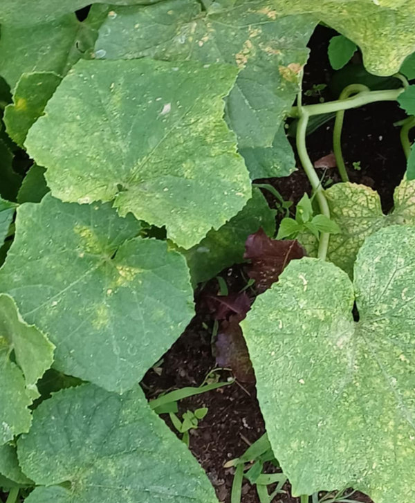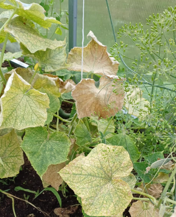 ✅ Jasne, mozaikowe plamy na liściach ogórków