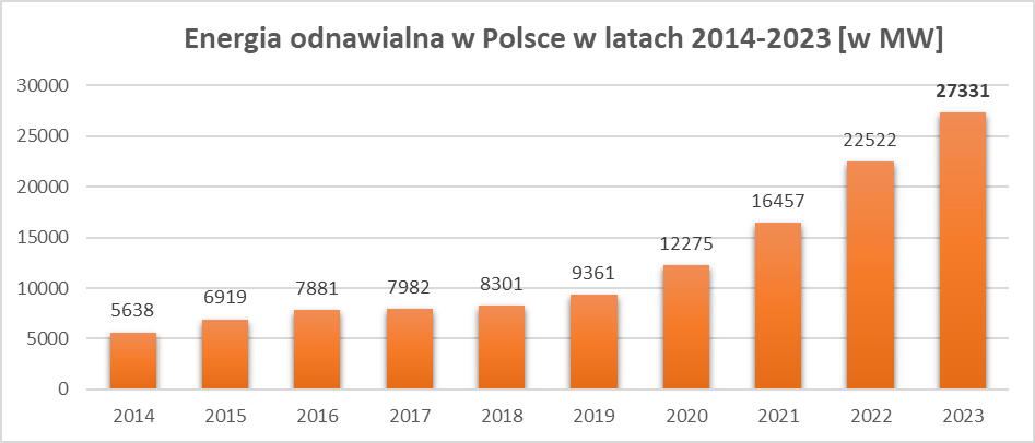 Od 2020 roku Polska niemal potroiła moc zainstalowaną w OZE w ciągu 4 lat. Między 2021 a 2022 rokiem nastąpił wzrost o ponad 6 000 MW – rekordowy wzrost w analizowanym okresie. Od 2014 do 2023 roku moc zainstalowana wzrosła prawie pięciokrotnie – z 5 638 MW do 27 331 MW.