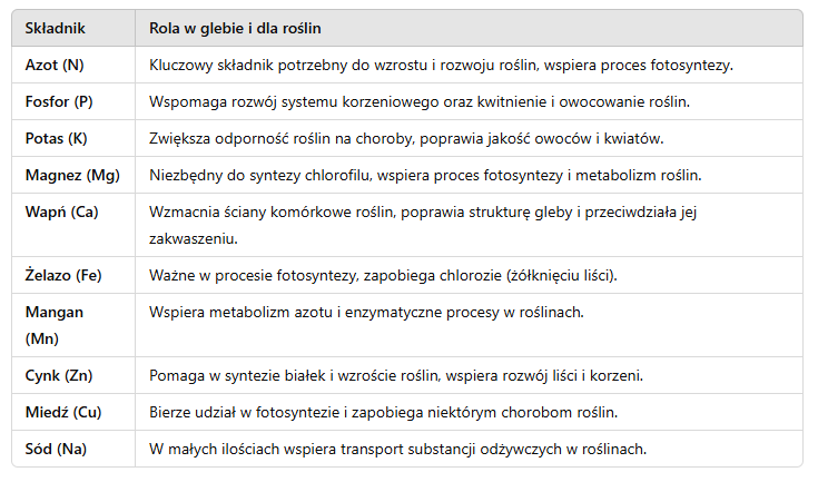 - Kwasy organiczne poprawiają strukturę gleby i wspierają rozwój mikroorganizmów.