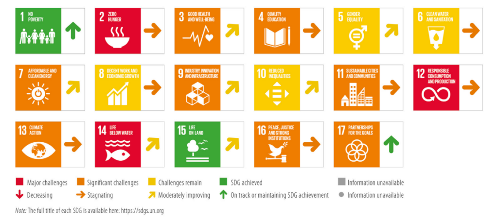 Jednak stagnacja i znaczne wyzwania pozostają w obszarach związanych z odpowiedzialną konsumpcją (Cel 12), klimatem (Cel 13), zero głodu (Cel 2), co wskazuje na potrzebę intensyfikacji działań w tych sferach.