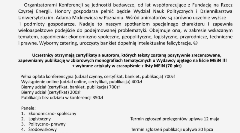 Czytaj dalejFundacja na Rzecz Czystej Energii, od lat zaangażowana w promowanie debat dotyczących bezpieczeństwa energetycznego, zaprasza do udziału w XIV edycji