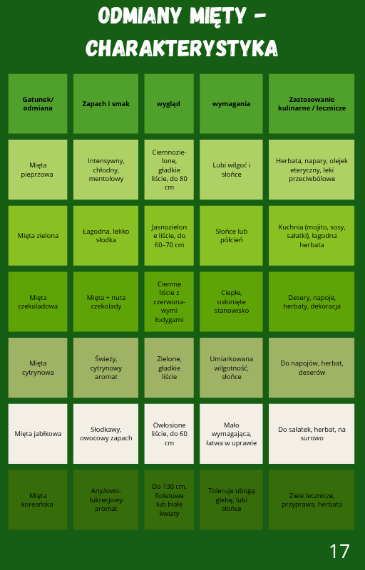 Mięta to nie tylko świeży aromat i letnia lemoniada. To także cała gama odmian, zastosowań i historii. Znajdziesz tu praktyczne wskazówki o jej uprawie, poznasz sposoby wykorzystania w codziennym życiu — od przepisów kulinarnych po kosmetyki i naturalne remedia.